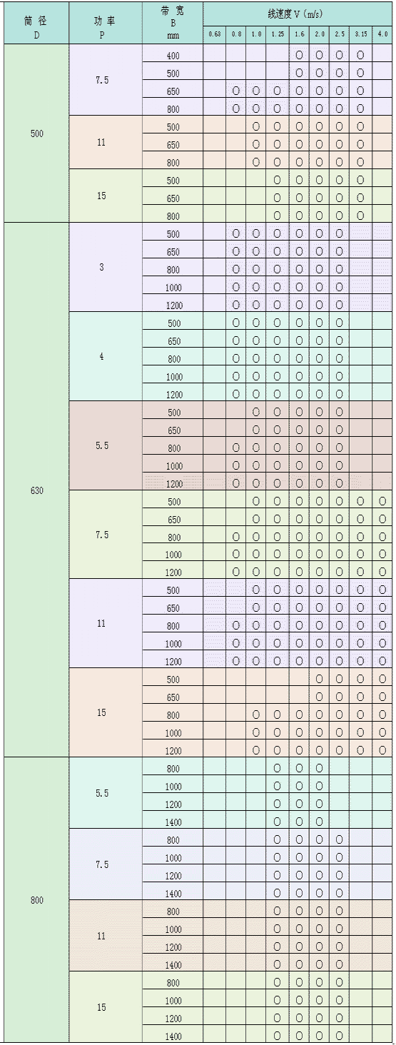 WD 型外裝式電動滾筒系列參數(shù)表: